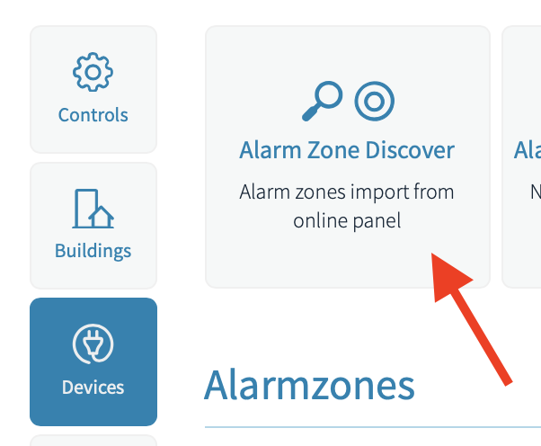 - Klik op devices → Alarm Zones → Alarm Zone Discover :
