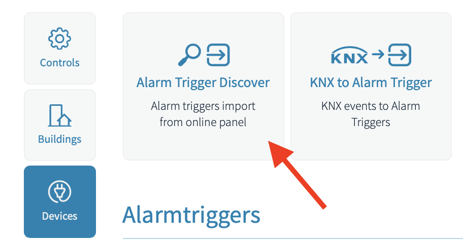 - Klik op devices → Alarm Triggers → Alarm Trigger Discover :