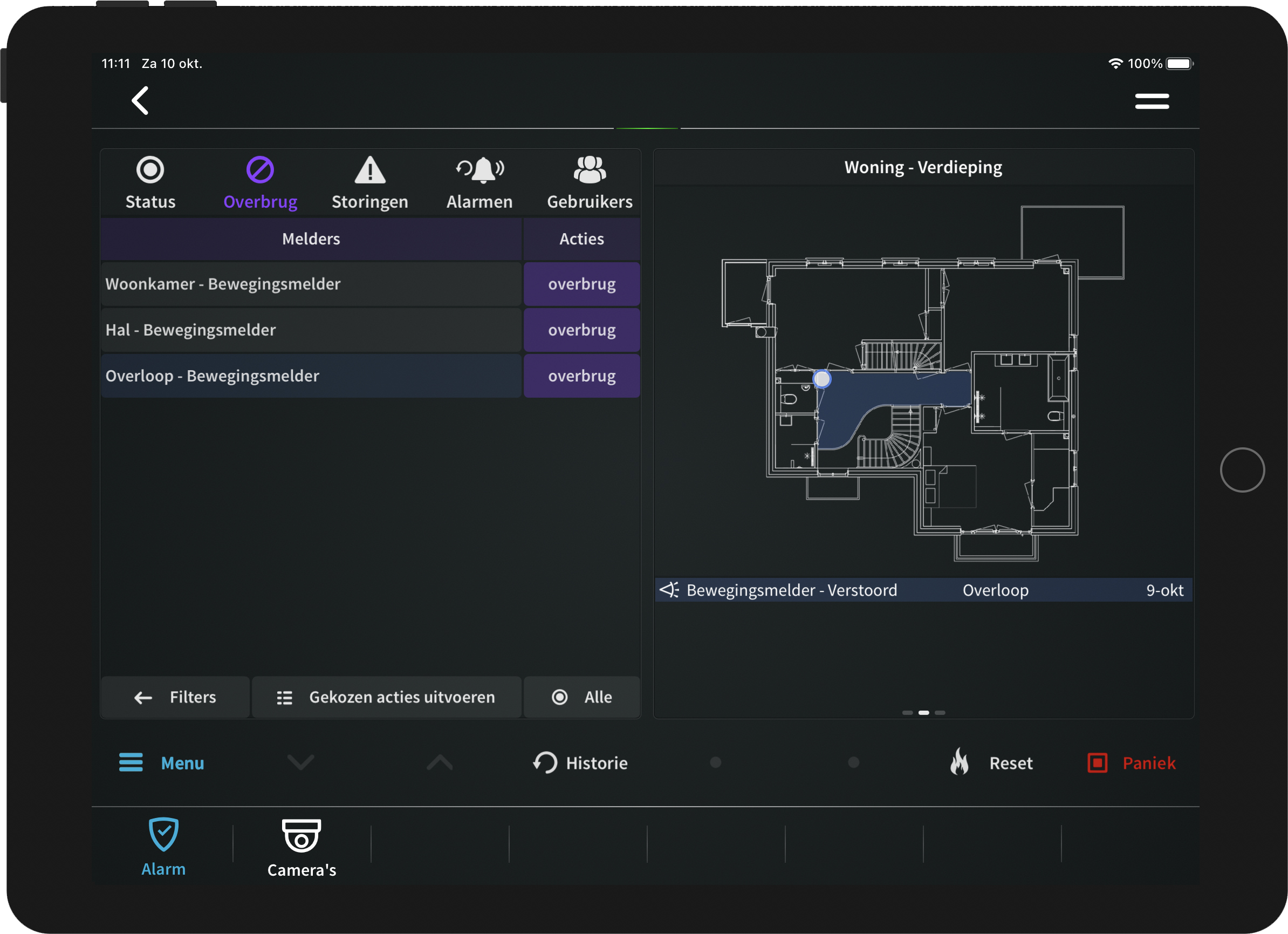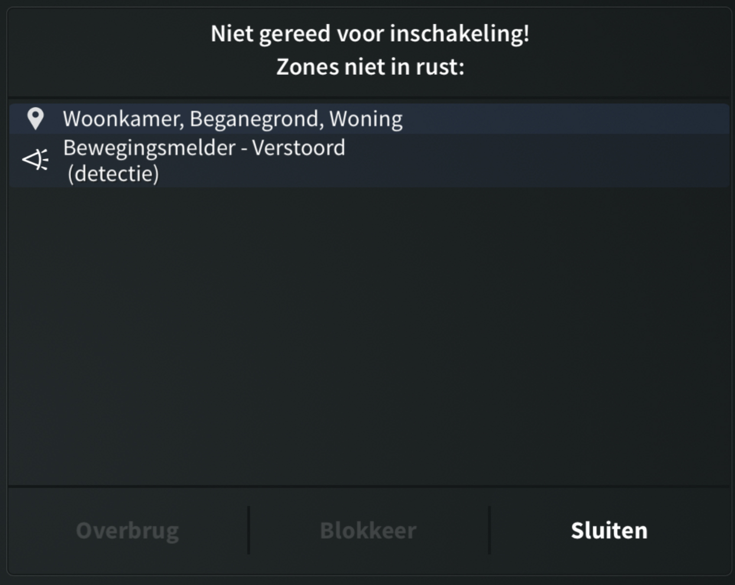 Overbrugd – lijst met alle in- en uit overbrugde zones/melders