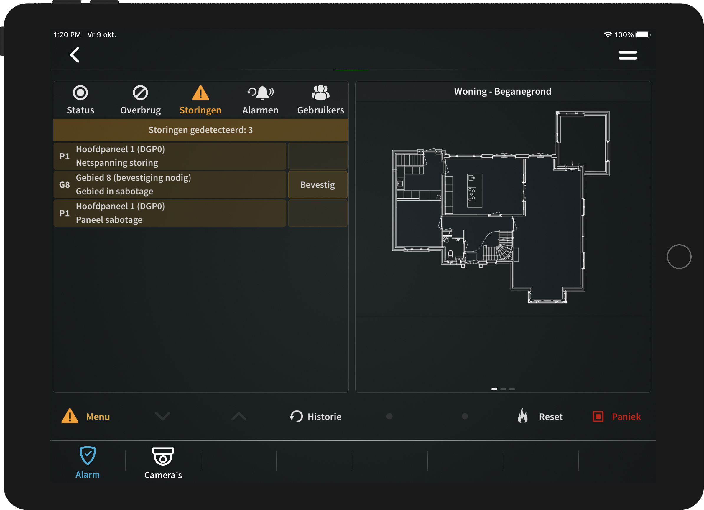 Hierin zullen alle storingen van het alarm paneel worden getoond.